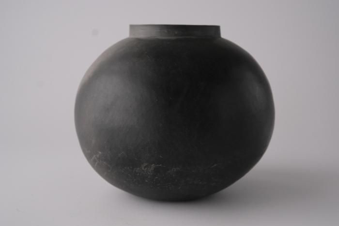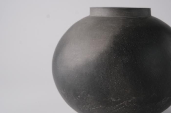 釉薬を掛けず作品と炭を一緒にサヤ鉢に入れ密閉して焼成する